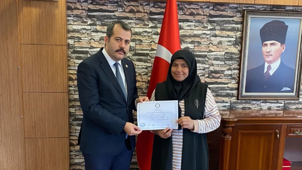 Vezirköprü'nün tek kadın muhtarı mazbatasını aldı