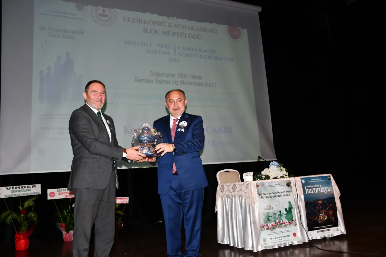 Vezirköprü İlçe Müftülüğü, Mevlid-i Nebi Haftası ve Camiler ile Din Görevlileri Haftası dolayısıyla anlamlı bir program düzenledi. Vezirköprü Belediyesi Konferans Salonu’nda gerçekleştirilen etkinlik, saygı duruşu ve İstiklal Marşı’nın okunmasıyla başladı. Ardından Kur’an-ı Kerim tilaveti yapıldı ve haftanın önemini anlatan sinevizyon gösterimi izlendi.