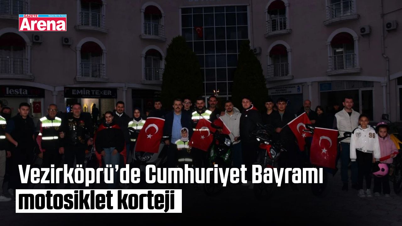 Samsun’un Vezirköprü ilçesinde, 29 Ekim Cumhuriyet Bayramı coşkusu motosiklet kortejiyle kutlandı. Vezirköprü Motosiklet Kulübü üyeleri, ilçede yaptıkları renkli geçişle Cumhuriyet’in 102. yılını anarken, Kaymakam Özgür Kaya gençlere trafik kurallarına uymaları konusunda uyarıda bulundu.