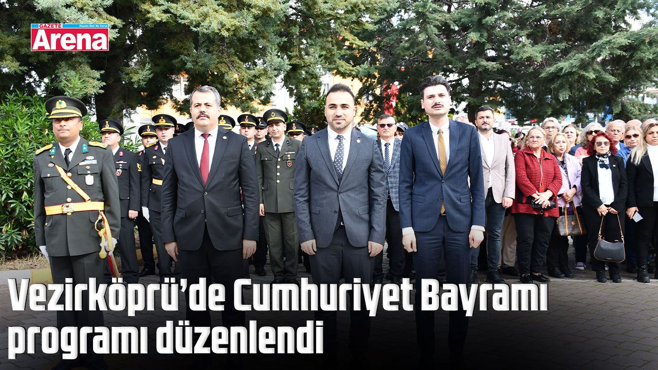 Cumhuriyet'in kuruluşunun 102. yılı dolayısıyla Samsun'un Vezirköprü ilçesinde program düzenlendi. Cumhuriyet Meydanı'ndaki törende Vezirköprü Kaymakamlığı, Belediye Başkanlığı ve Garnizon Komutanlığı adına Atatürk Anıtı'na çelenk sunuldu.