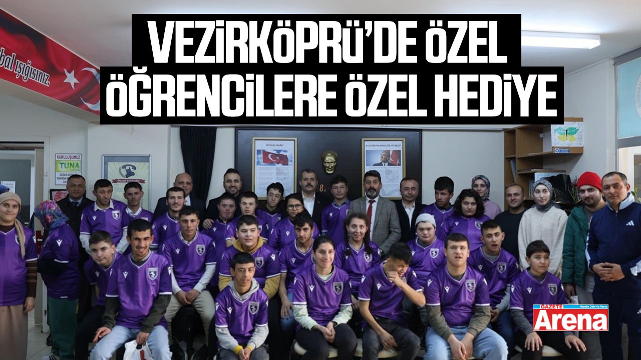 Samsun’un Vezirköprü ilçesinde özel gereksinimli öğrencilere yönelik anlamlı bir etkinlik gerçekleştirildi. Vezirköprü Kaymakamı Özgür Kaya, beraberindeki yetkililerle birlikte Nazmiye Osman Kolay Özel Eğitim Uygulama Okulu’nu ziyaret etti. Ziyaret kapsamında okulda eğitim gören özel öğrencilere Samsunspor forması hediye edildi.