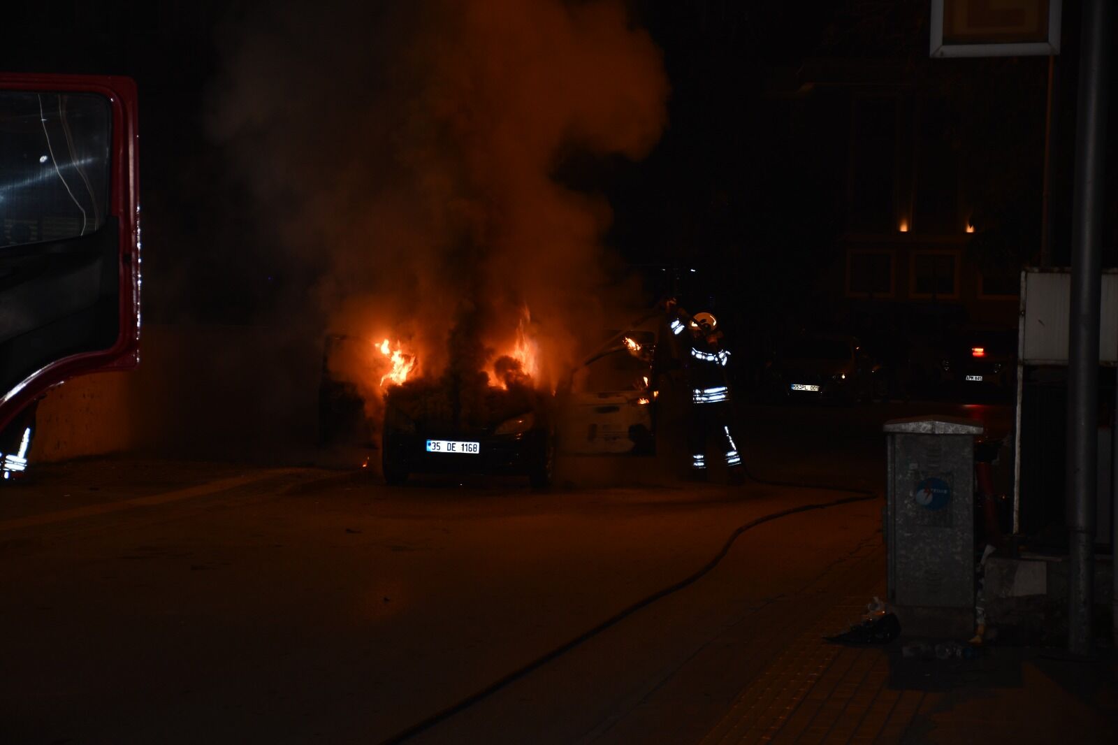 İtfaiye ekiplerinin müdahalesiyle söndürülen yangında otomobil tamamen zarar gördü.
