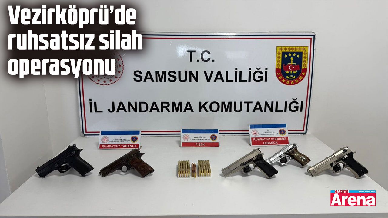 Samsun İl Jandarma Komutanlığı ekiplerince belirlenen adreslere düzenlenen operasyonlarda yapılan aramada 2 ruhsatsız tabanca ve 3 kurusıkı tabanca ele geçirildi.