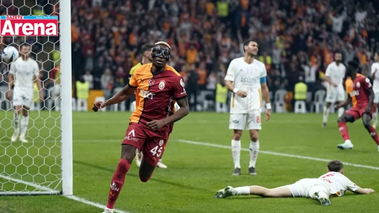 Trendyol Süper Lig’in 28. haftasında Galatasaray evinde Antalyaspor ile karşılaşırken, sarı-kırmızılılarda Nijeryalı futbolcu Victor Osimhen 3 gol kaydetti. Müsabakanın 30. dakikasında Barış Alper Yılmaz’ın pasında ceza sahası içi sol tarafında topla buluşan Alvaro Morata’nın içeriye çevirdiği topu arka direkte iyi takip eden Osimhen, meşin yuvarlağı ağlara göndererek 1-0 yaptı. 26 yaşındaki futbolcu, 45+2. dakikada sağ kanattan Barış Alper’in getirdiği topu kale önünde ağlarla buluşturdu ve skoru 3-0’a getirdi. Karşılaşmanın 52. dakikasında Yunus Akgün’ün pasıyla bu sefer ceza sahası içi sol tarafında topu alan Nijeryalı futbolcunun yerden yaptığı vuruşta meşin yuvarlak ağlara gitti ve skor 4-0 oldu.