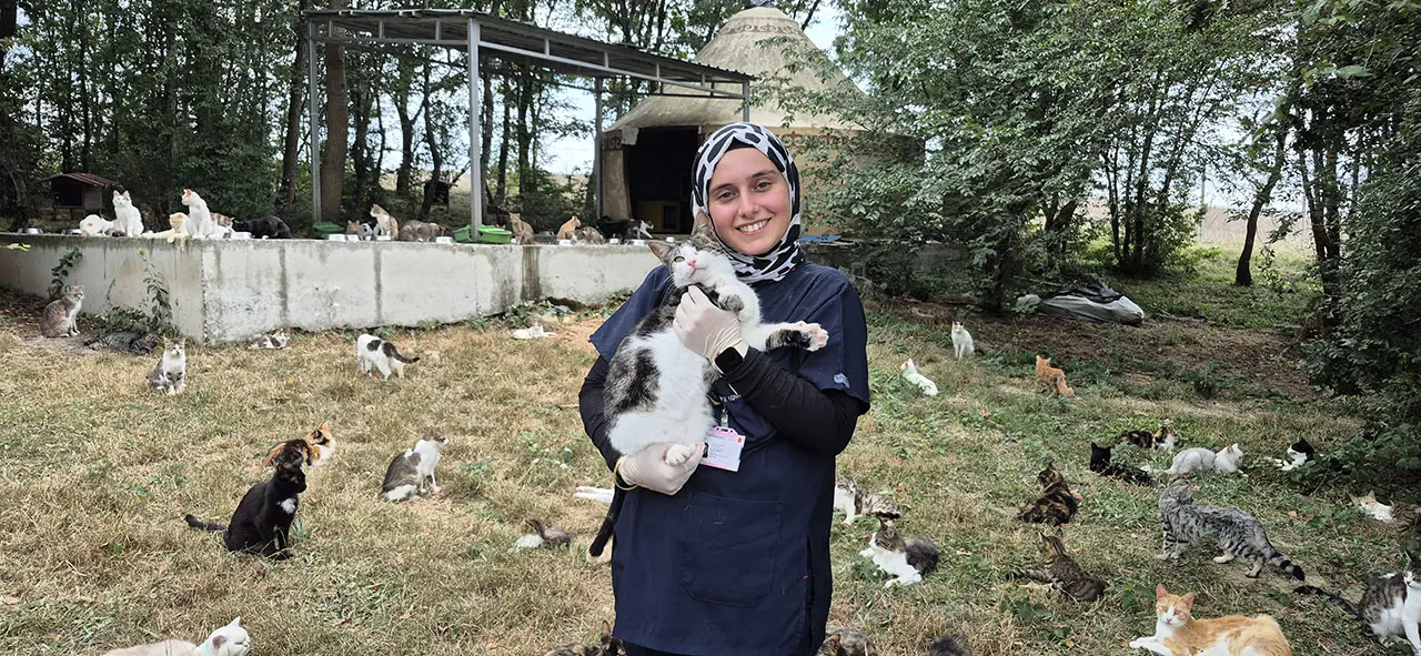 Kedi kasabasında günlük rutinler, veteriner hekimler ve teknisyenler tarafından titizlikle yürütülüyor. Veteriner Hekim Zekiye Kondakçı, uygulamaları şöyle özetledi: