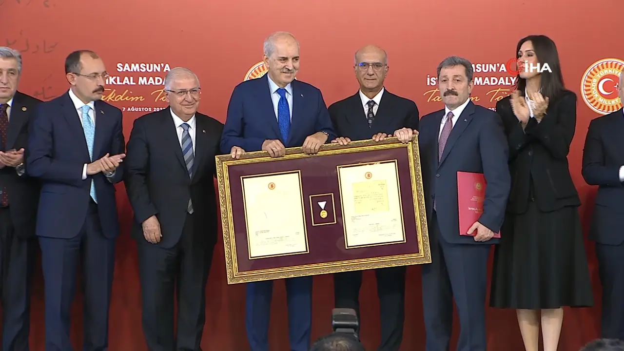 Türkiye Büyük Millet Meclisi’nde, “Samsun’a İstiklal Madalyası Takdim Töreni” gerçekleştirildi. TBMM Şeref Holü’nde düzenlenen törene TBMM Başkanı Numan Kurtulmuş, Milli Savunma Bakanı Yaşar Güler, Samsun Valisi Orhan Tavlı, Samsun milletvekilleri, Samsun Büyükşehir Belediye Başkanı Halit Doğan, gaziler ve şehit yakınları katıldı.