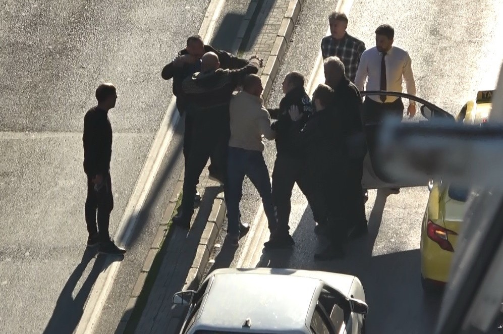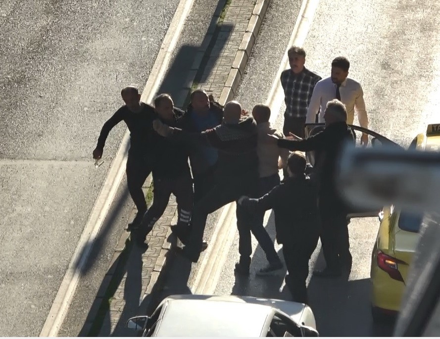 Otomobilden inen iki kişi taksi şoförünün yanına giderek fiziki müdahalede bulundu. Kavgaya dönüşen olaya çevredeki vatandaşlar müdahale etti.
