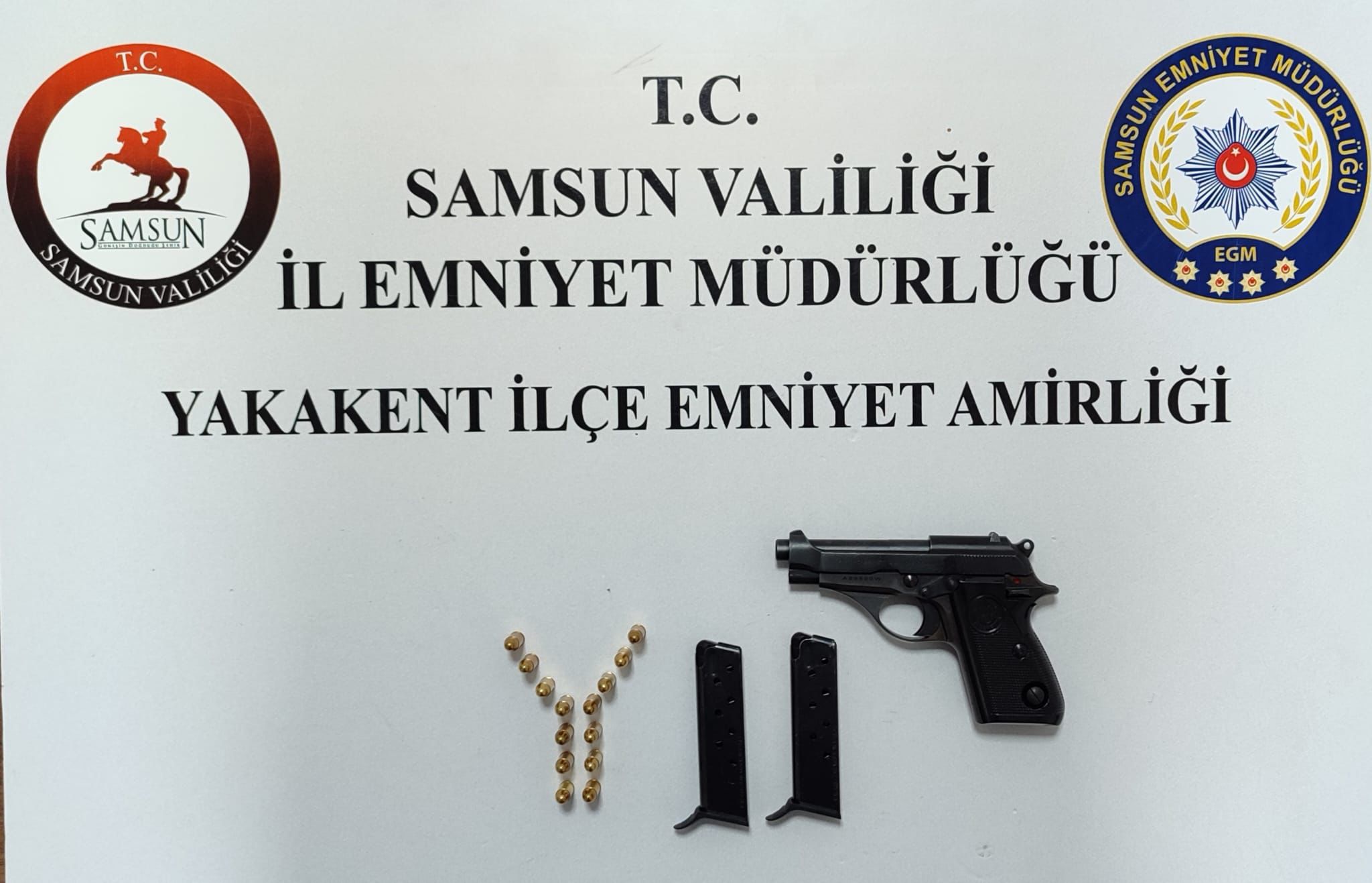 Samsun’un Yakakent ilçesinde polis ekiplerince gerçekleştirilen denetimlerde bir araçta ruhsatsız tabanca ele geçirildi. Samsun İl Emniyet Müdürlüğü’ne bağlı Yakakent İlçe Emniyet Amirliği ekipleri tarafından ilçe genelinde yapılan denetimler kapsamında durdurulan araçta arama yapıldı. Aramada, C.Ç. (1977) isimli şahsın kullandığı araçta 1 adet ruhsatsız tabanca ile 14 adet 7x65 mm tabanca fişeği bulundu.