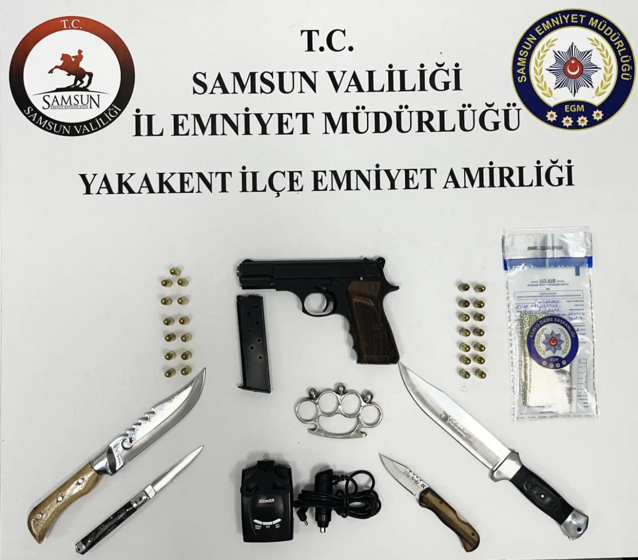 Denetimler sırasında polis ekipleri 9 mm ruhsatsız tabanca ve 27 fişek ele geçirdi. Ayrıca bir radar tespit cihazı ve bir esrarlı sigara kontrol altına alındı. Yapılan uygulamalarda 10 adet sentetik ecza, dört bıçak ve bir muşta da suç unsuru olarak kayıtlara geçti. Yetkililer, ele geçirilen bu maddelerin ilçede güvenliği artırmak için önemli olduğunu vurguladı.