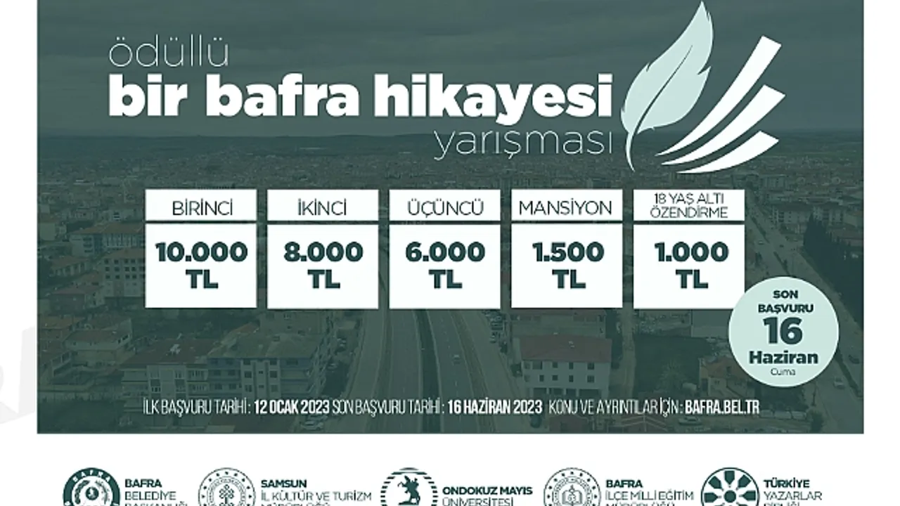 İlçenin kültürel hafızasına katkı sağlayarak Bafra’nın göz ardı edilen, unutulan veya fark edilmeyen yönlerinin gerçek hayat hikâyelerinden esinlenerek yazıya aktarılması, sanatsal faaliyetlerin geliştirilmesi ve edebiyatımıza yeni isimler kazandırırken aynı zamanda bireylerin kendisini geliştirmesi için bir fırsat yakalaması amacıyla organize edilen “Bir Bafra Hikâyesi” hikâye yazma yarışması vatandaşlar tarafından büyük ilgi ile karşılandı. Ülkece yaşanılan deprem sonrası sekteye uğrayan başvurular vatandaşlardan gelen yoğun talep üzerine 12 Nisan 2023’ten 16 Haziran 2023’e kadar uzatıldı.