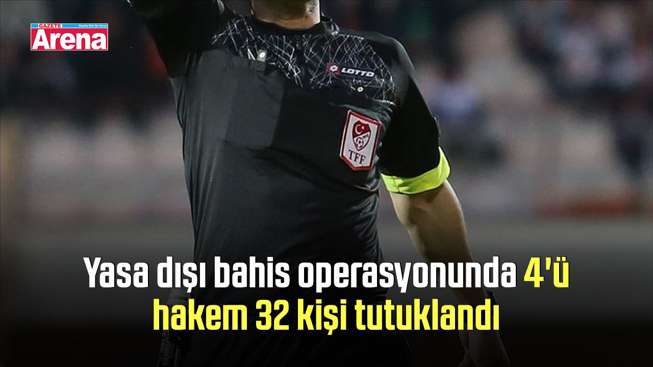 Mersin merkezli 9 ilde eş zamanlı düzenlenen yasa dışı bahis ve kara para aklama operasyonunda gözaltına alınan 40 şüpheliden 32’si tutuklandı. Tutuklananlar arasında klasman düzeyinde görev yapan 4 hakemin bulunması, operasyonun spor camiasında da geniş yankı uyandırmasına neden oldu.