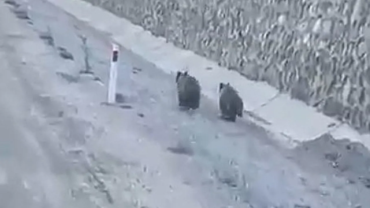 Ayıları gören sürücüler, o anları cep telefonlarıyla görüntüledi. Bir süre koşan yavru ayılar daha sonra gözden kayboldu.