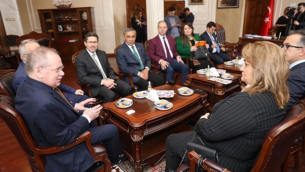 Samsun’a gelen Yeni Azerbaycan Partisi heyeti, Büyükşehir Belediyesi’ni ziyaret etti. Azerbaycan Parlamentosu Komisyon Başkanı Hicran Hüseynova, Yeni Azerbaycan Partisi Milletvekilleri Ramin Mammadov, Nasib Mahamaliyev, İlham Mammadov ile parti teşkilatı üyeleri Samsun Büyükşehir Belediye Başkanı Mustafa Demir ile görüştü. AK Parti Samsun İl Başkanı Mehmet Köse ziyarette heyete eşlik etti. İki ülke dostluğuna ve ortak güce vurgu yapılan ziyaret yaklaşık 1 saat sürdü. Başkan Demir, ziyarette kentte gerçekleştirilen projelerle ilgili bilgi verdi.