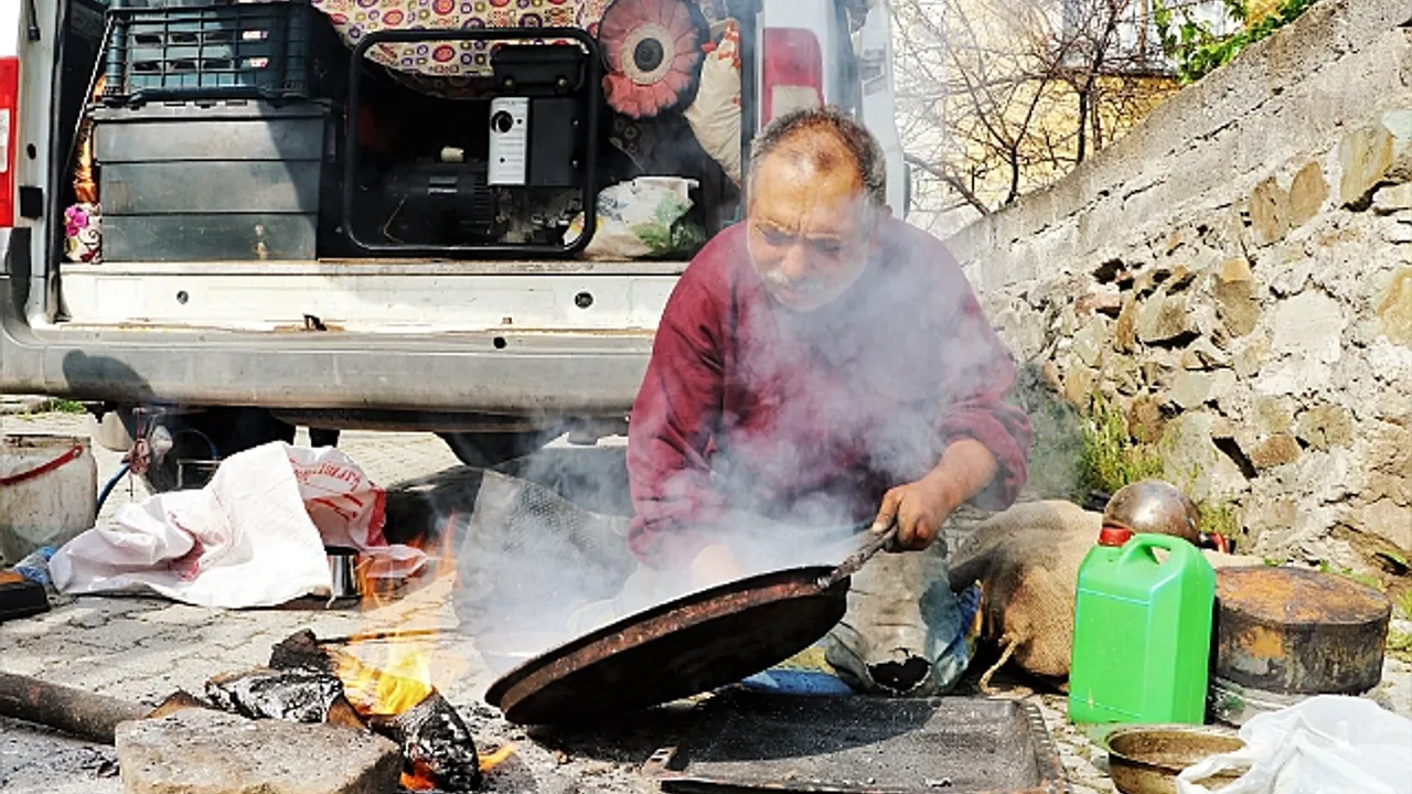 52 yaşındaki seyyar kalaycı Mahmut Okan, “Kahramanmaraş’tan geldik. Kalay işi yapıyorum. Mesleği babamdan öğrendim. Babam da babasından öğrenmiş. Yaklaşık 50-60 senelik işimiz yani. 35 yıldır ben kendim yapıyorum. Köy köy, kasaba kasaba geziyorum. Bulduğum yerde çalışıyoruz. Depremden etkilendiğimiz için buralara geldik. Normal de oralarda da çalışıyorduk. İş yerimiz olmadığı için, orada da iş yerleri yıkıldı. Evimiz biraz hasar gördü. Hasar tespit yaptıklarından dolayı ona göre çıktık yani. Şimdi kalaycılık, semercilik, nalbantçılık bunlar unutmaya yüz tutmuş meslekler. Unutulmaya yüz tutmuş bu mesleği 80 yıldır ailemle beraber yapıyorum” dedi.