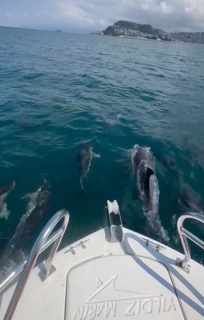 Giresun’da yaşayan Cemre Sarı arkadaşları ile birlikte yüzmek için tekneyle Giresun Adası’na doğru yola çıktı. Giresun açıklarında teknenin bir süre sonra çevresini saran yunus sürüsü Sarı ve arkadaşlarının bulunduğu tekne ile yarışmaya başladı. Teknedekiler o anları cep telefonu ile kaydetti. Cemre Sarı, ilk kez bu kadar çok yunusu bir arada gördüğünü belirterek "20-25 tane yunus bizi adaya kadar takip ettiler. Bu anı bizde ölümsüzleştirmek için kayda aldık" dedi.