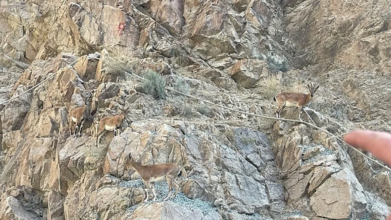 Adeta yer çekimine meydan okuyan yaban keçileri sürü halinde geziyor. Su ve taşlardan tuz ihtiyaçlarını gidermek için sürüler halinde bu tehlikeyi göze alan keçilerin zorlu yolculuğu görüntülenirken, insanlardan kaçmamaları dikkat çekiyor.