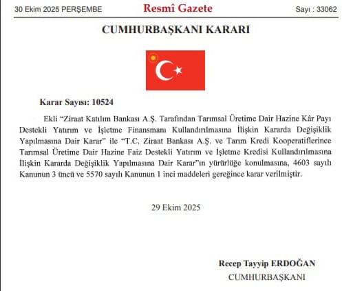 ZMO Samsun Şube Başkanı Bayzat, gelen tepkiler üzerine çiftçinin faiz yükünü artıran kararın, Resmi Gazete'nin 30 Ekim 2024 tarihli sayısında yayımlanan yeni karar ile kaldırıldığını belirterek, "Kredilerdeki faiz indiriminin eski oranlarla devam etmesi yönünde karar alındı. Kullandırılan limitler de aynı oranda kullandırılmaya devam edilecek." diye konuştu.